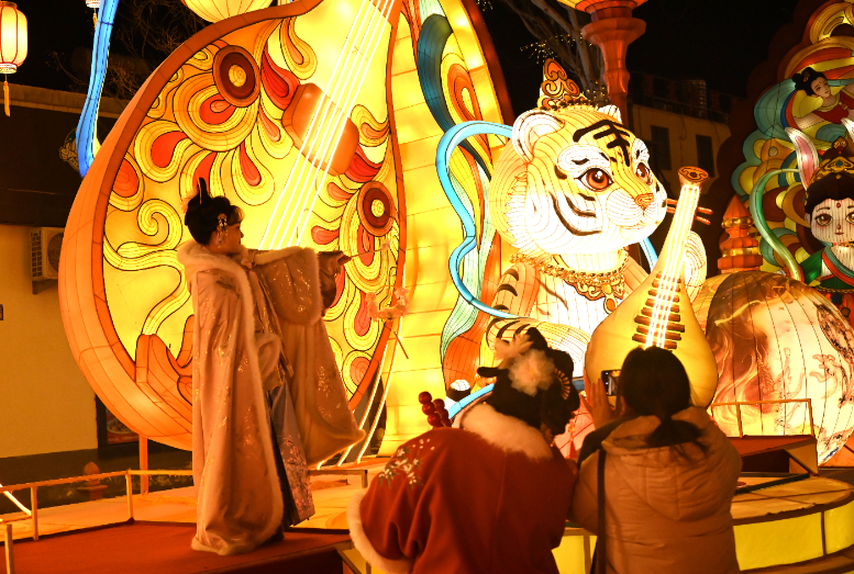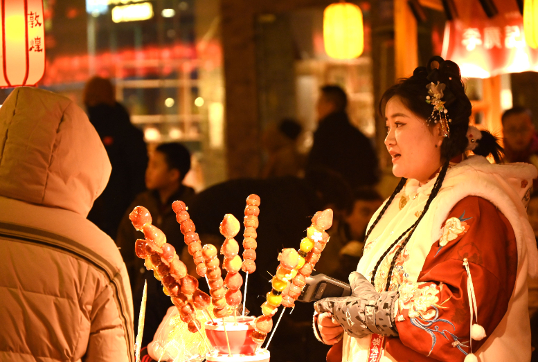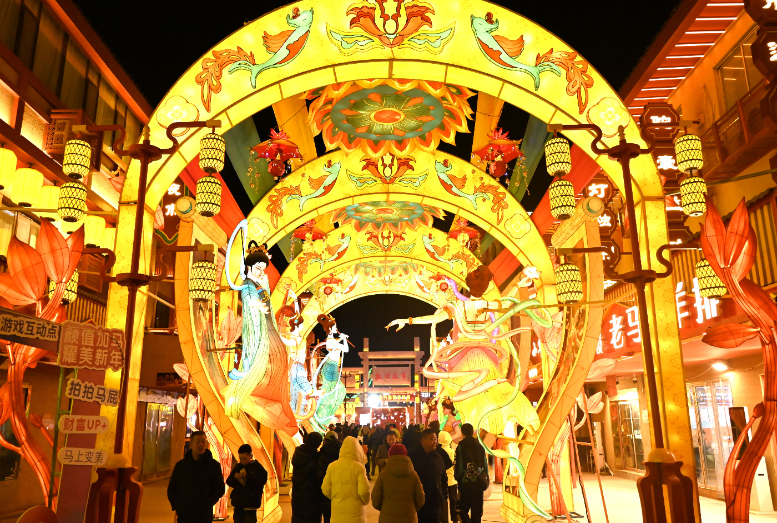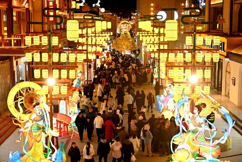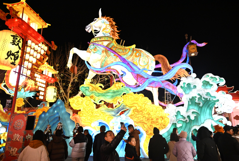 佳节将至,游客走进丝路敦煌,观灯会、赏民俗、购文创、品美食,喜迎新春。(张晓亮 摄)