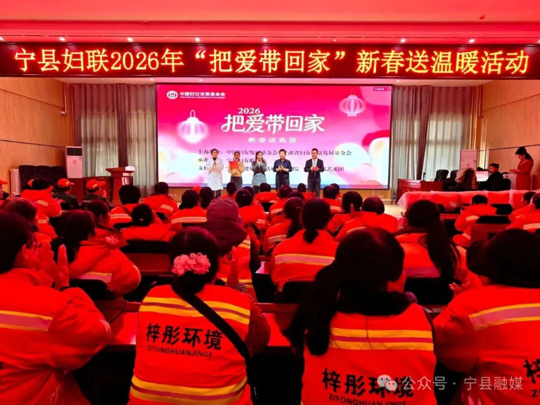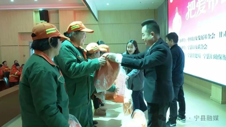 近日,宁县妇联在县妇幼保健院开展2026年“把爱带回家”新春送温暖活动,为87名女性环卫工人发放了精心准备的“母亲邮包”,送去冬日的关怀与新年的祝福。