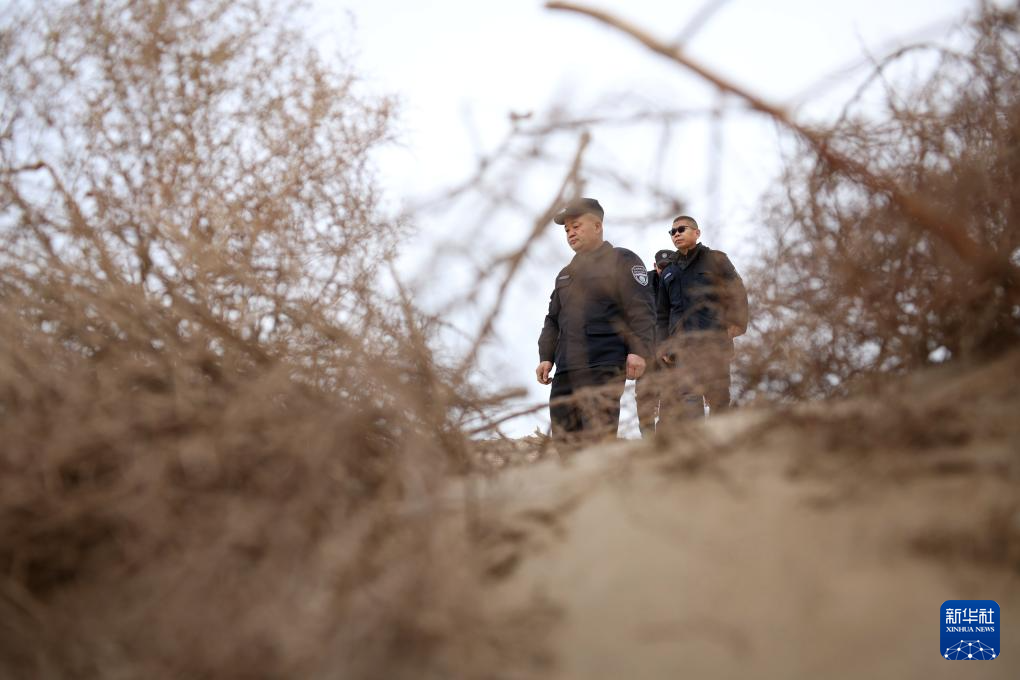 甘肃敦煌西湖国家级自然保护区管护中心玉门关保护站站长吴兴东在保护区内检查围栏(2月5日摄)。新华社记者 陈斌 摄