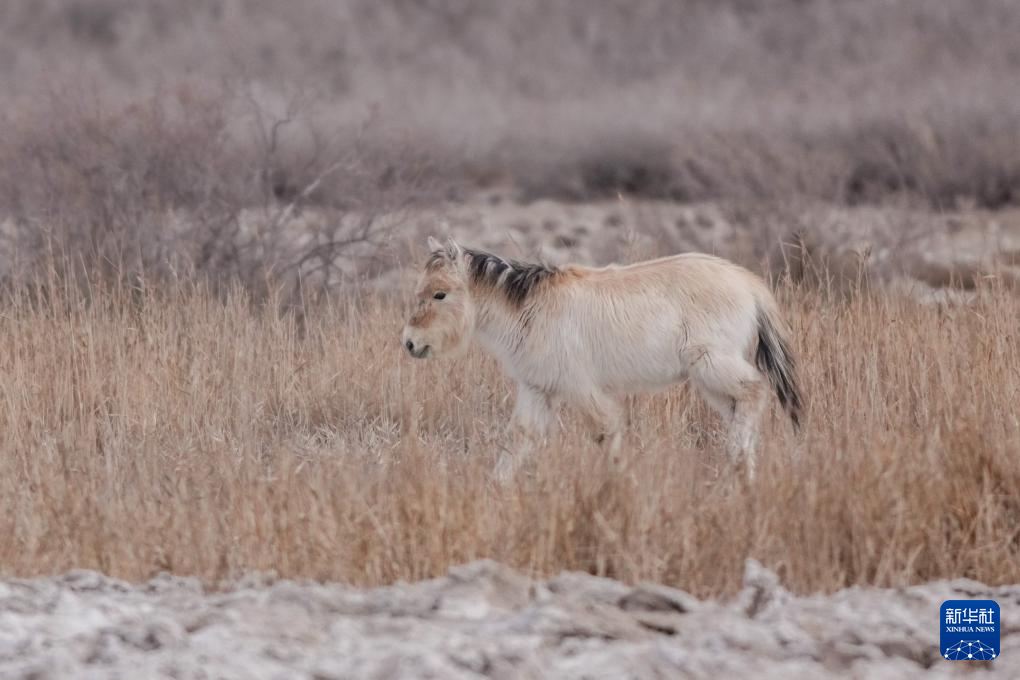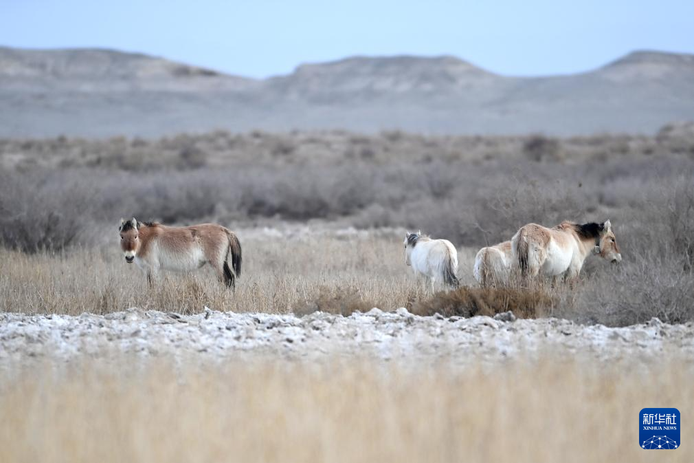 这是在甘肃敦煌西湖国家级自然保护区拍摄的普氏野马(2月5日摄)。新华社记者 陈斌 摄