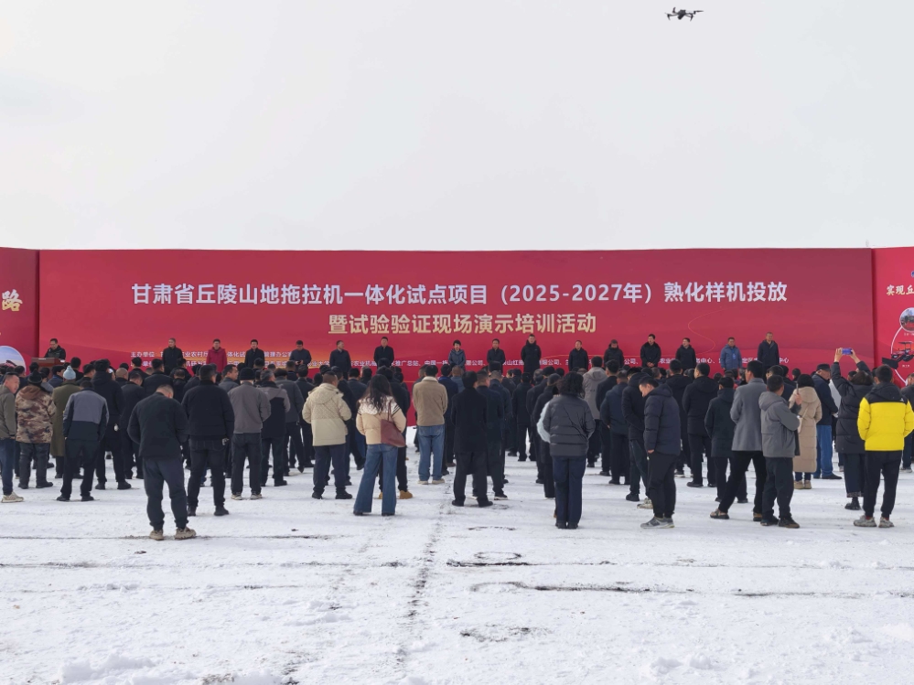 3月14日,在甘肃省定西市的丘陵山地拖拉机一体化试点项目(2025-2027年)熟化样机试验验证现场演示培训活动上,510台针对丘陵山地作业环境研发的新型农机集中投放。