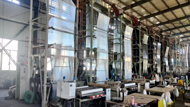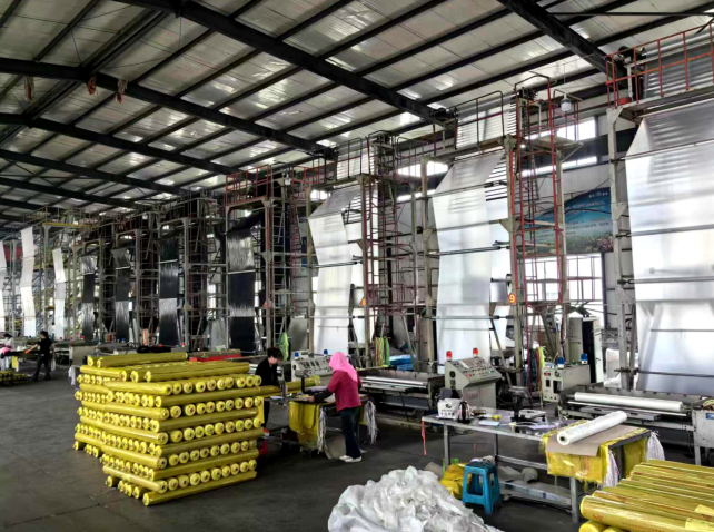 走进企业生产车间,机器轰鸣作响,一派热火朝天的繁忙景象。地膜吹塑设备全负荷运转,全自动化生产线上,优质农用薄膜从8米高的吹膜口“喷涌”而出,自上而下如流水般层层缠绕在卷筒上,工人们分工明确、有条不紊地忙着收卷、称重、包装,一卷卷吹塑成型的地膜被整齐堆码,静待发往田间地头。