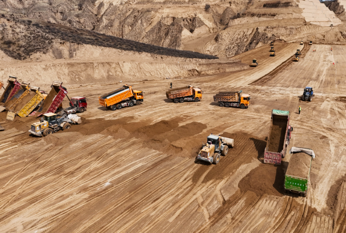 与此同时,位于耿湾乡四合原村境内的项目五标段K68+975-K69+500高填路基施工现场,更是一派气势恢宏的大干场面。作为全线最大的高填方路基工程,此处填土高度高、施工难度大。放眼望去,60多台压路机、推土机、洒水车等大型机械来回穿梭,技术人员和监理人员坚守一线,严格核验数据、把控质量,确保每一道工序都规范有序。“针对黄土高原沟壑纵横、地质复杂的特点,我们坚持‘一冲沟一方案’,施工中严格执行‘四区段八流程’标准化工艺,通过网格化标记、布设标高墩等措施,严控填筑质量,确保路基稳固。”项目五标段工程部部长丁路波在现场介绍道。