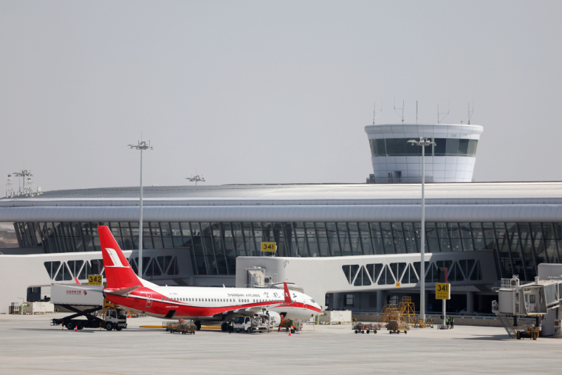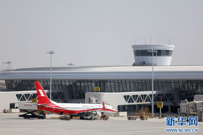 一架航班停靠在兰州中川国际机场T3航站楼。新华社记者 陈斌 摄