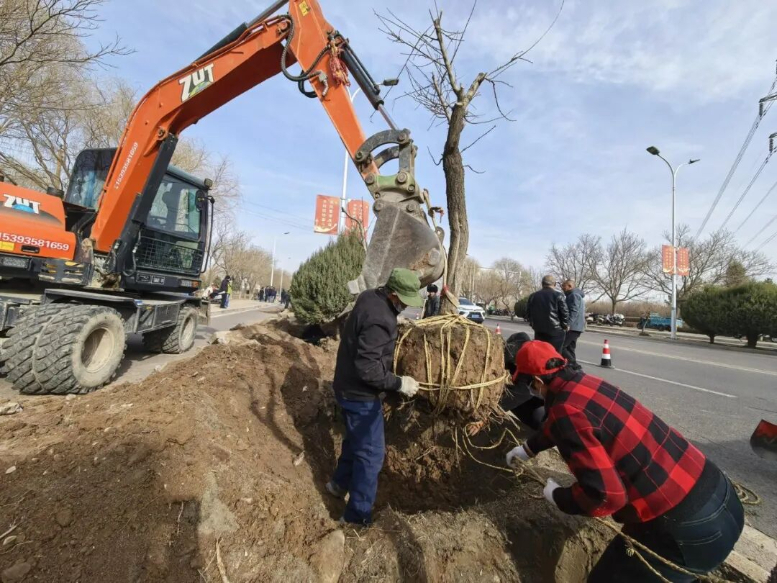 “小心调整吊绳,千万别碰树干!”3月16日清晨,金昌市北京路(高架桥至高速口)段,吆喝声划破晨雾。680余株乔木的“迁居”工程正紧锣密鼓开展,120余名工作人员以匠心护绿意,一场城市绿化的“精准迁移”有序进行。