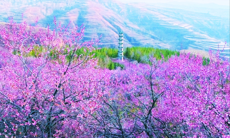 阳光明媚,春色渐浓。位于康乐县虎关乡亥姆寺山的桃花灼灼盛放,美不胜收。 通讯员 马吉祥 摄