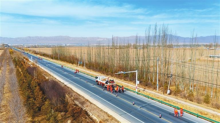 近日,张掖公路事业发展中心组织职工开展春季路面养护作业。(新甘肃·甘肃日报通讯员 傅翔宇)