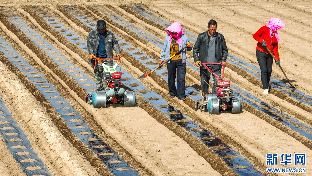 连日来,随着气温逐步回升,甘肃省张掖市临泽县平川镇4.4万多亩制种玉米基地进入覆膜保墒关键阶段。农户们严格按照精细化制种要求,开展划线、表施底肥等作业,操作小型专用覆膜机进行覆膜保墒,田间地头一派繁忙的春耕生产景象。新华网发(王将摄)