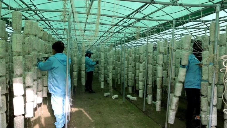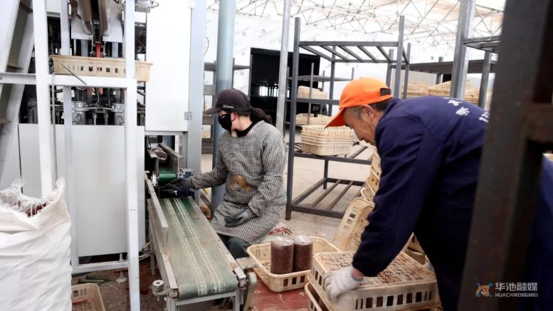 车间内,自动化制棒生产线马力全开,拌料、装袋、灭菌、接种流程高效衔接。村民们动作娴熟,将菌棒精准上架,各类菌菇长势喜人,丰收的喜悦写在每个人脸上。产业园开到“家门口”,让周边村民实现了“挣钱顾家两不误”。