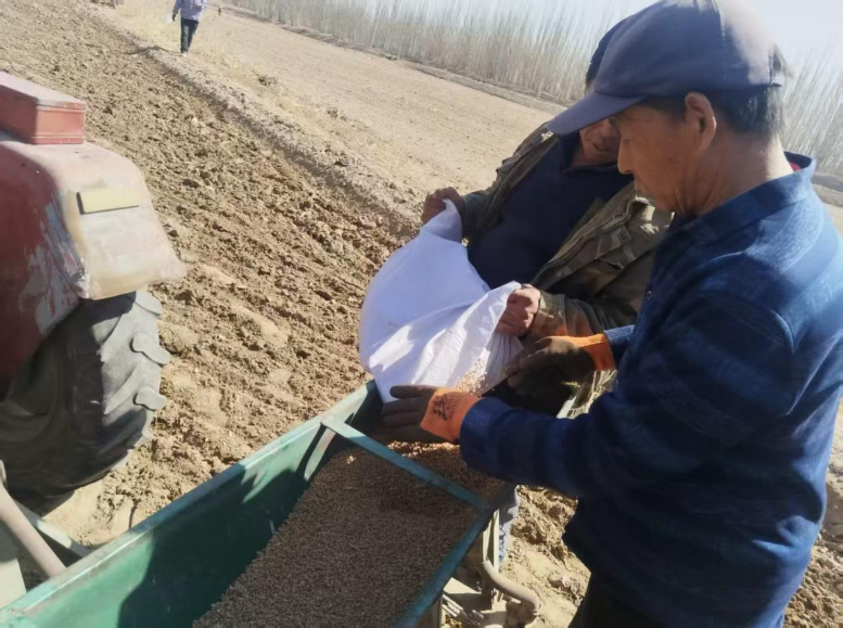 清晨,岷州村的田埂上,村民王俊科蹲下身,仔细查看刚播下的小麦种子。他抓起一把土,轻轻捻开:“墒情正好,今年播种比往年快了两天。”
