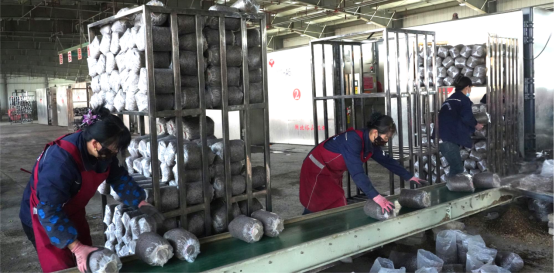走进生产车间,拌料、装袋、灭菌、接种等工序环环相扣、高效运转,一根根满载希望的菌棒源源不断从生产线产出,整齐码放在一旁,等待发往各种植基地。公司负责人张学翔穿梭在车间内,一边查看生产进度,一边协调物资供应。