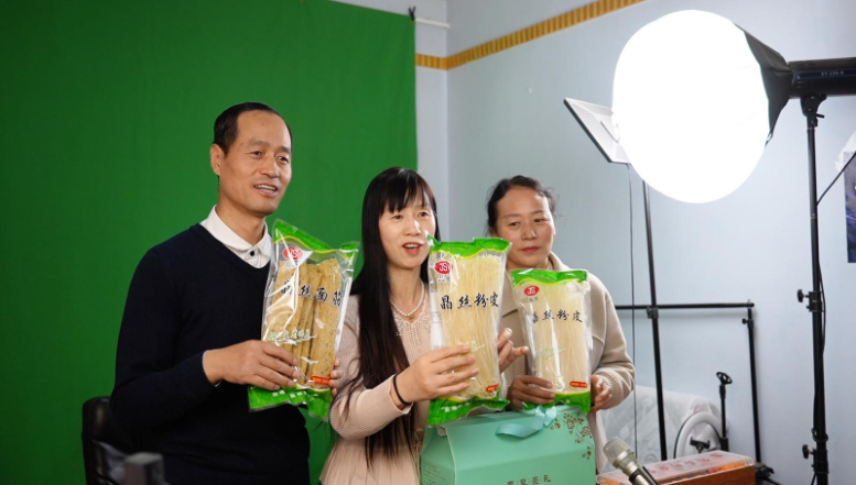 “这是我们金塔县本地产的西红柿,酸甜可口、营养丰富;接下来,再来看看咱们金塔粉皮色泽莹润、干净无杂质,入口爽滑筋道……”