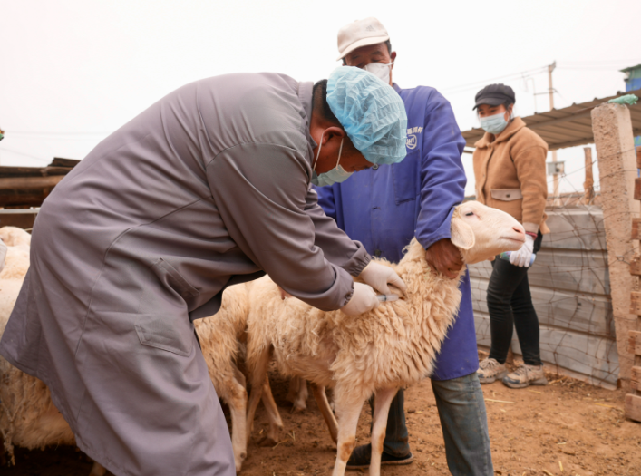 春日既是春耕的关键期,也是畜禽春季防疫的重要时节。在陈渠子村村民陈继岳家的羊圈旁,一堂特殊的“防疫课”正在进行。产业指导员陈吉显蹲在圈舍边,一边给羊注射疫苗,一边给陈继岳讲解春季防疫要点:“口蹄疫疫苗要按时打,圈舍定期消毒,平时多观察羊的精神状态……”