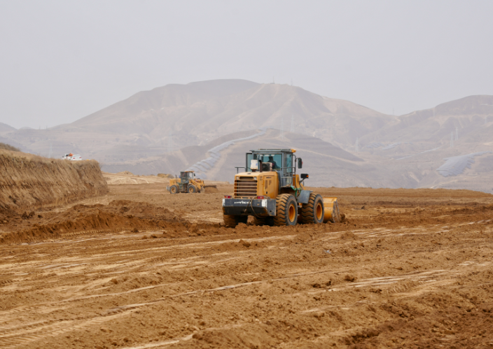 在罗山川乡大树塬村高标准农田建设第二标段施工现场,两台装载机正往返穿梭,推土、平整、压实,曾经零碎、崎岖的坡耕地,在机械的作业下逐渐变得平整连片,黄土被翻整得松软细腻。