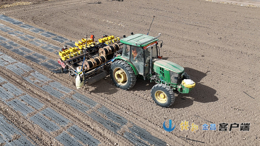 与永昌县不同,金川区的田间地头则上演着另一场“精细账”的算盘。3月30日,记者来到金川区宁远堡镇新华村时,金昌市土蛋蛋农业农民专业合作社的2300亩流转地里,加装北斗导航的大型播种机正来回穿梭。