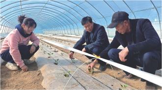 “今年栽植的‘天山雪玉’扎根稳、长得旺,5月初就能上市,就这50米长的一座日光温室,一茬下来就能挣上两万块;等到7月份再种一茬辣椒、西红柿等果菜,管护到位还能落6000多块,算下来,一座棚一年纯收入有2万多元呢。”盘口村蔬菜大棚里,种植户陈小林一边俯身打理着菜苗,一边给算起增收账。