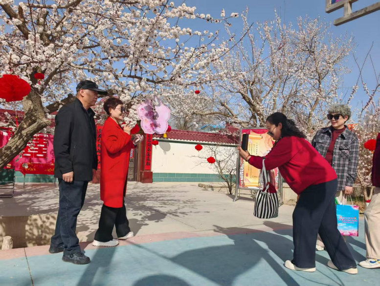 花海深处,巧念“文旅经”。在金塔镇红光村,房前屋后杏花绽放。在位于县城北郊“杏花村”的杏韵庄园农家乐里,经营者俞静正忙着招呼几桌正在用餐的游客。俞静说:“这几年村里人气越来越旺,我们的生意也跟着水涨船高。2025年,我家仅农家乐一项收入就达20余万元。”