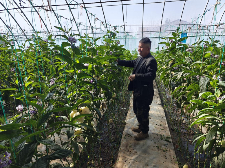 戈壁深处,深耕“棚经济”。从红光村驱车到营泉村,这里的景象截然不同。在营泉沙漠生态农业园,一座座高标准日光温室连片铺展。种植户章建林正在自家的人参果大棚里忙得满头大汗。他说:“我种植的1.2亩人参果温棚长势非常好,这几天来采摘的人特别多,现场采摘每公斤10元,收入不错。”章建林全家包括老母亲和一双儿女在内共计5口人,经营30多亩地,温室蔬菜大棚成为全家主要经济来源。