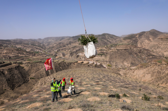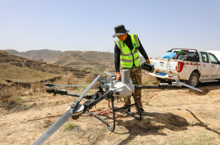 “我们运用草灌套播、混交造林、钵苗培育、泥浆蘸根等科学方法,取得了良好生态效益;无人机调运苗木、航拍测绘检查等技术手段,进一步提高了工作效率和施工质量。”环县自然资源局工作人员闫天鹏表示,目前全县无人机吊运苗木覆盖率超90%,既保障作业安全,又降低苗木损耗,全面提升造林质效。