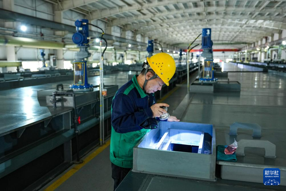 4月13日,在金昌高能环境技术有限公司湿法车间,工作人员进行浸出作业。新华社记者 郎兵兵 摄