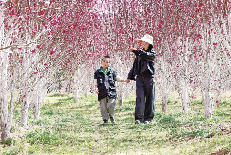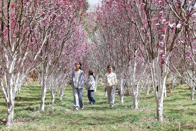 近日,西峰区温泉镇八里庙村太一农庄的万株桃花竞相绽放。粉白相间的花瓣缀满枝头,如云似霞、芬芳四溢,勾勒出一幅春日乡村美景图,吸引了众多游客前来踏青赏景、写生创作、拍照打卡,尽享春日的生机与惬意。