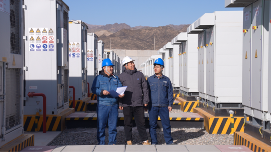 甘肃电力员工在嘉峪关为全省目前建成并网容量最大的电化学储能电站——宁晟500兆瓦1000兆瓦时独立储能电站开展用电上门检查服务。姜欣蓉 摄