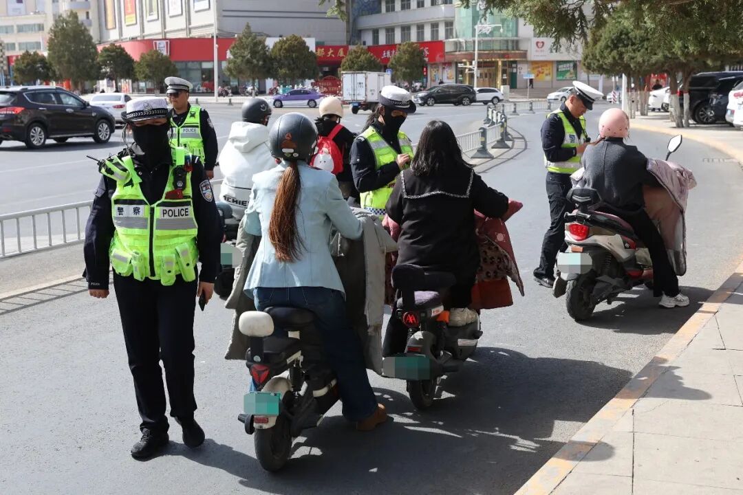 市公安局金川分局交管大队查处骑乘电动车未佩戴安全头盔行为