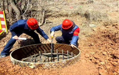 在110千伏线路3号塔位,施工班组汪斌和工友正顶着风进行钢筋捆扎。“这基塔位在半山坡,地形陡、作业面小,我们肩扛手抬把材料运上来,每根钢筋间距、绑扎点都严格按图纸来,不能有半点马虎。”说话间,他的额头已渗出汗珠,手上磨出的老茧与银色钢筋相映,诉说着电网建设者的坚守。
