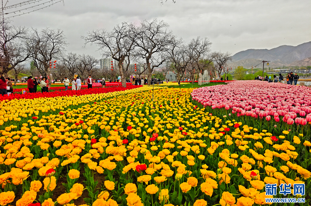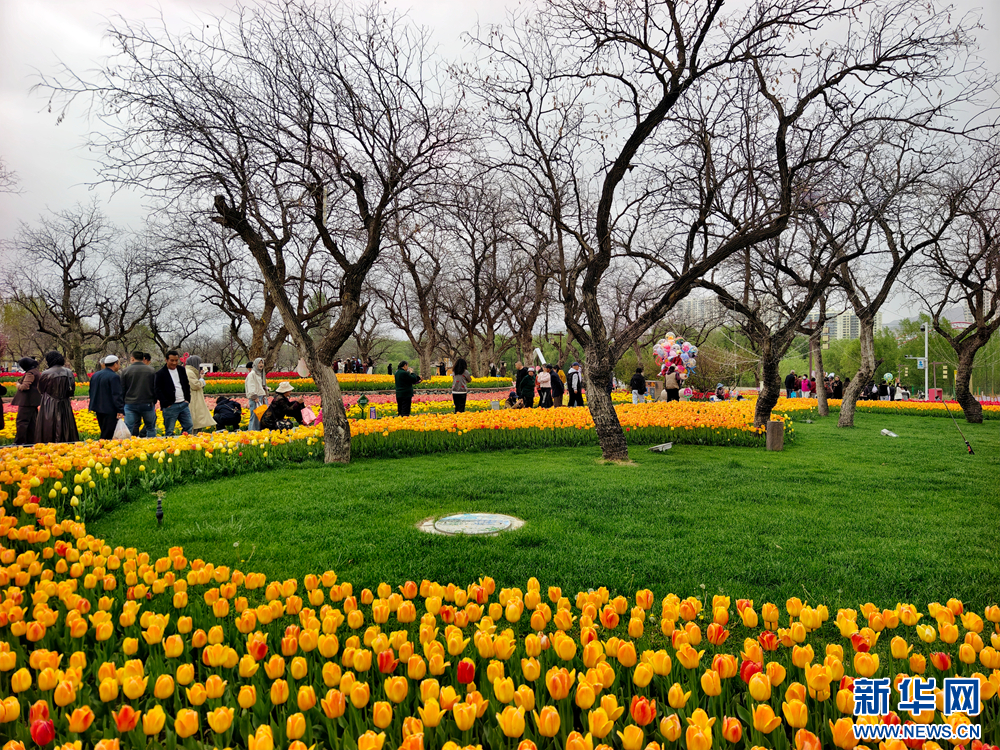 黄河之滨郁金香竞相绽放。新华网发(吕亚龙摄)
