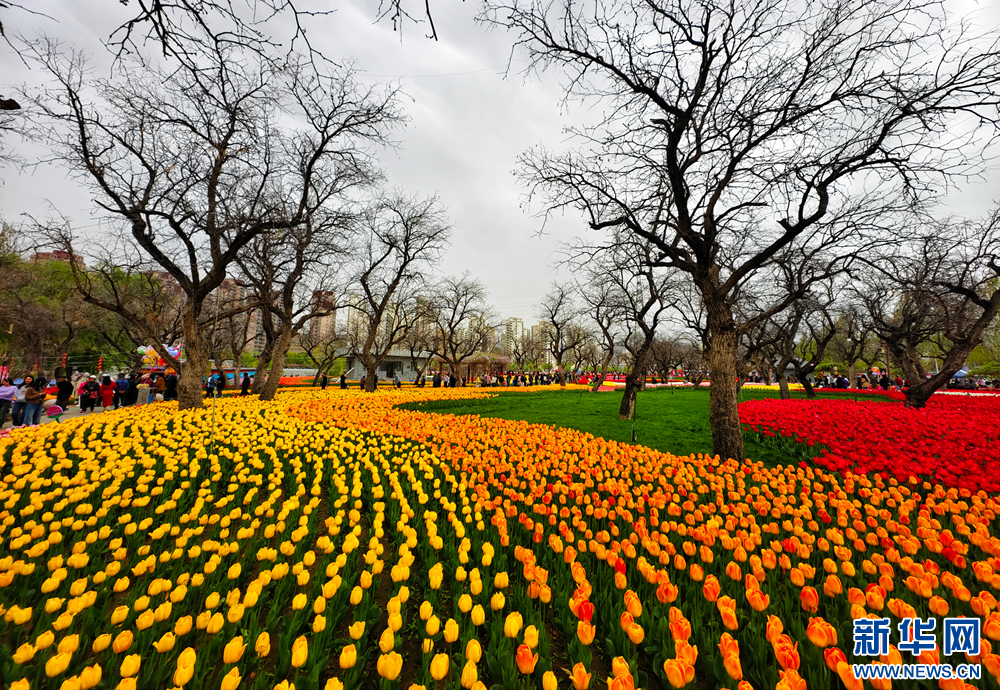 郁金香织就花海。新华网发(王生元摄)