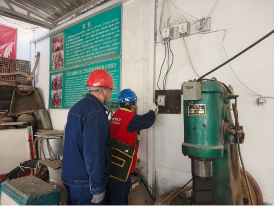 国网积石山县供电公司工作人员马如山、马奇凡再次走进工坊,开展常态化走访,保安族腰刀锻制工艺繁杂精细,电力空气锤等现代化生产设备全面普及后,对供电稳定性、电力承载力提出了更高要求,我们的工作就是保障工坊的用电安全。