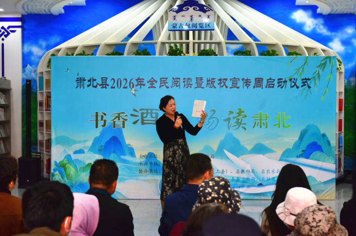4月21日,肃北县2026年“全民阅读暨版权宣传周”启动仪式在县图书馆举行。本次活动以“书香酒泉·畅读肃北”为主题,旨在倡导全民阅读风尚,强化版权保护意识。