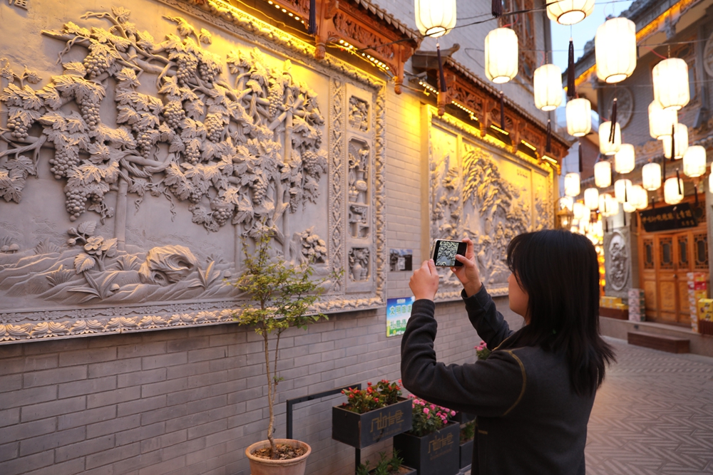 游客在八坊十三巷拍照打卡。(王生元 摄)