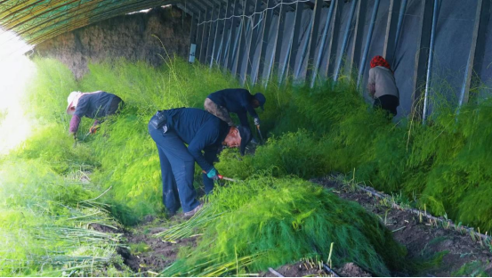 “割茎、浇水、施肥,管护到位,一个星期后就能迎来新一轮采收。”种植户张泉一边忙碌一边介绍,芦笋种植管护相对简便、采收期长、效益稳定。