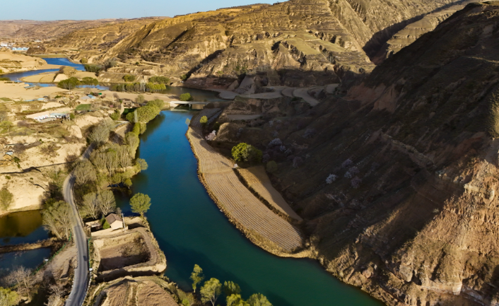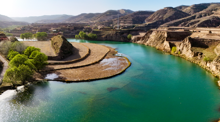 环县地处西北黄土高原腹地,这里的春天来得稍晚一些。当山岭丘壑尚未完全被绿意覆盖时,水库那一抹宝蓝色已悄悄在山间蔓延,成为大山中耀眼的“绿翡翠”。沿着坝体两岸,树木越来越多,生态环境越来越好。