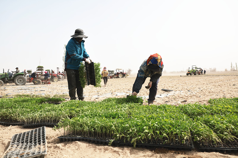 微风拂大地,农时催耕忙。眼下,正是番茄移栽的好时节,金塔县抢抓农时,移苗栽种番茄,播种丰收希望。