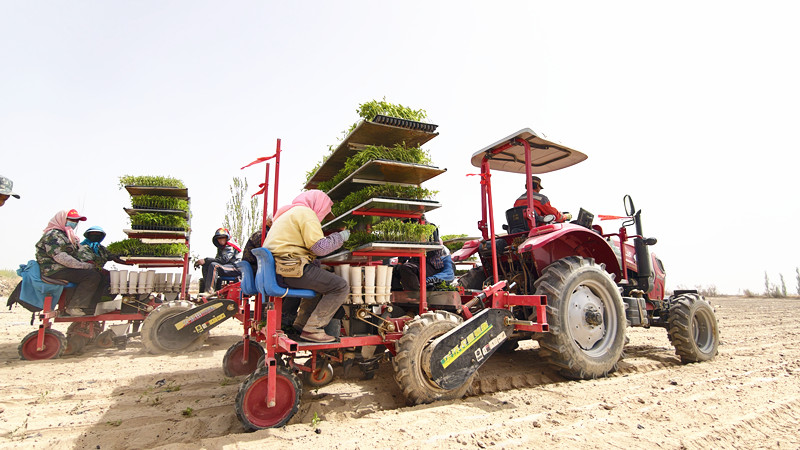 “近年来,我们加大农机化新技术和装备的引进示范推广力度,重点推广穴盘化育苗、机械化移栽、飞防式管理、机械化收获等农机新技术,推动特色产业向标准化、集约化、高效化转型,助力乡村产业振兴、种植节本增效、农民持续增收。”金塔县农机服务中心副主任陶吉中说。
