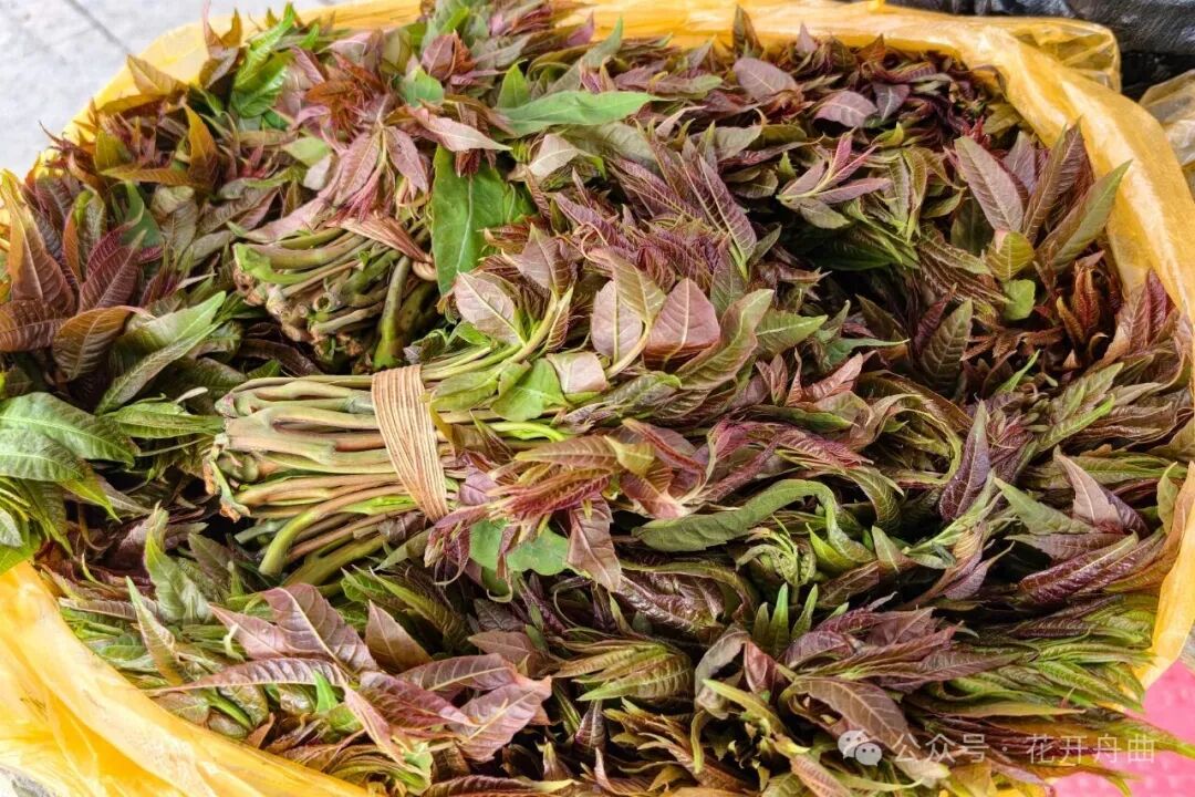 与此同时,山间的馈赠也如期而至,各类山野菜悄然“出圈”,成为市集上的另一道风景线。刺五加、乌龙头、蕨菜、香椿等山野菜整齐摆放,散发着淡淡的草木清香,原生态的模样让人眼前一亮,成为追求健康饮食市民的“心头好”。“这两天乌龙头、刺五加刚上市,每天都不够卖,大家都喜欢这口天然的味道。”摊主王女士忙得不可开交,手上的活计不停,脸上满是笑意。