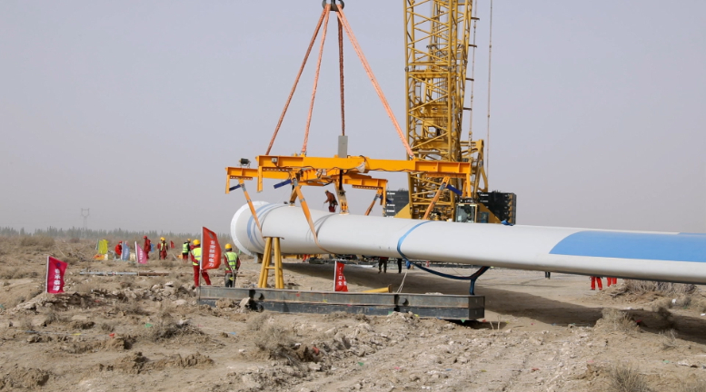 风逐春光启新程,绿电赋能促振兴。4月24日,甘肃省首个“千乡万村驭风行动”瓜州试点项目首台风机顺利完成整体吊装。这个关键节点任务的完成,为项目按期实现全容量并网发电、绿色能源就地就近消纳、村企共建共享惠民落地筑牢坚实工程根基。