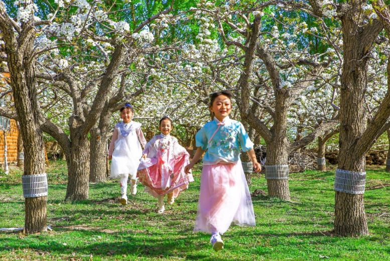 本次活动内容丰富,亮点纷呈。除了沉浸式的赏花体验,现场还精心打造了“梨园有‘宴’”特色美食集市、“梨园有‘韵’”国风服装巡游等活动。