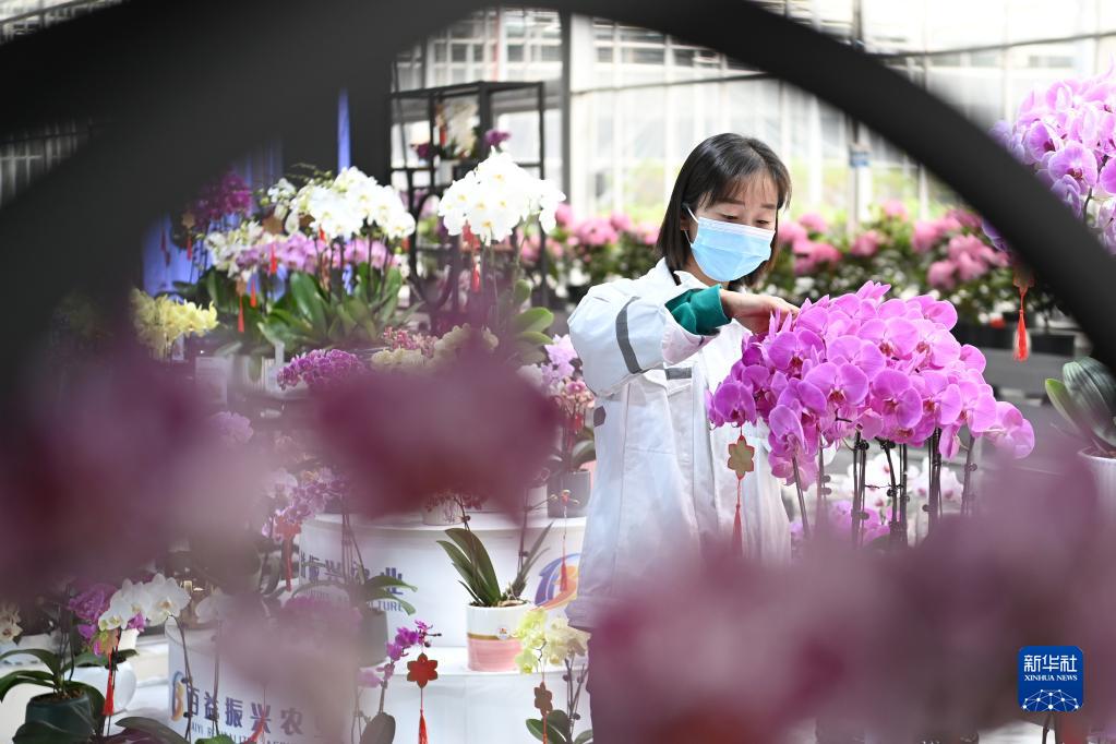 2月23日,在和政县一家现代花卉产业园,工作人员对花卉进行日常管护。新华社记者 范培珅 摄