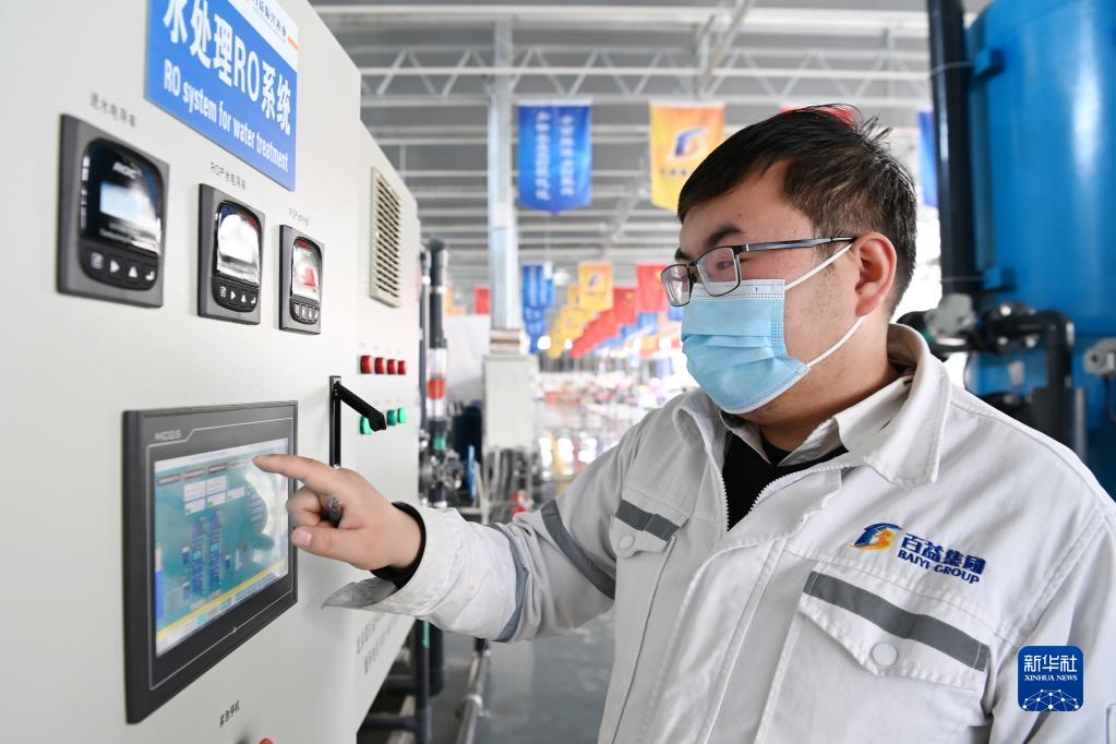 2月23日,在和政县一家现代花卉产业园,工作人员操作智能控制系统。新华社记者 范培珅 摄