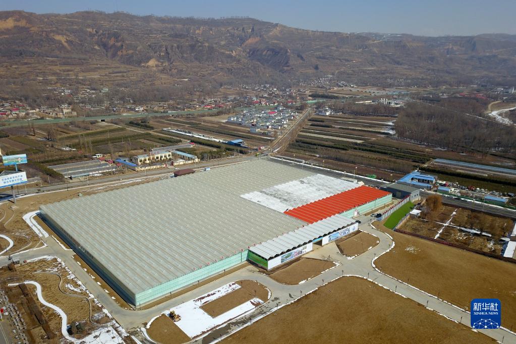 这是2月23日在和政县三合镇石虎家村拍摄的一家现代花卉产业园外景(无人机照片)。新华社记者 范培珅 摄
