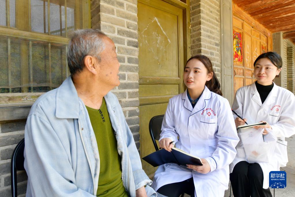 在武都区桔柑镇卫生院,李瑞(左)了解患者住院期间饮食情况(5月11日摄)。新华社记者 范培珅 摄