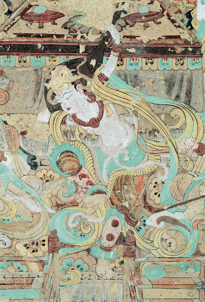 敦煌壁画中的“反弹琵琶”。(敦煌研究院供图)