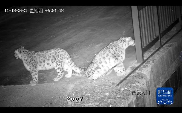 新华社兰州11月22日电(记者王博)近日,甘肃省肃南裕固族自治县境内一水电站的监控摄像头记录了一段特殊的“值班日志”:两只雪豹清晨来访。虽然在近几年,这已不是人类和雪豹在祁连山区的首次“近距离接触”,但雪豹在人类活动区域逗留的情形仍十分罕见。