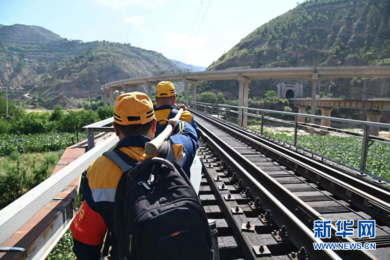 新华网兰州7月5日电(童张伟) 大山里,渭河旁,危石下,线路边,三间活动板房隐藏在漫山青翠之中。陇海上行线1435公里Ⅰ级防洪看守点,是中国铁路兰州局集团有限公司定西工务段汛期防洪最为核心关键的处所之一。定西工务段管内的陇海铁路天兰段属于典型的山区铁路,近90%的铁路路基为湿陷性黄土路基,线路依山傍河、山多坡陡、沟壑纵横,地质情况复杂,汛期存在危岩落石、滑坡、泥石流等自然灾害的严峻考验。