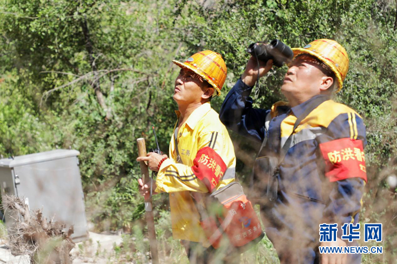 交班过程中,赵世俊拿着望远镜观察山体。新华网发(童张伟 摄)