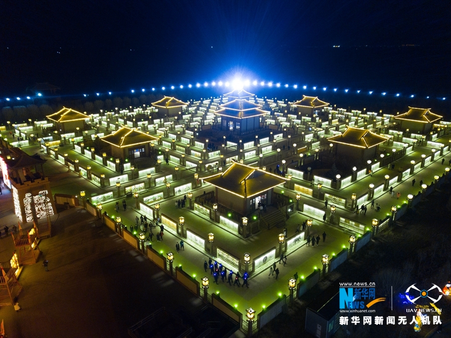 九曲黄河灯阵是甘肃省张掖市甘州区碱滩镇古城村流传了上千年的历史文化遗产。1月31日晚,今年的灯阵正式亮相,当地通过灯光音响,以及焰火、社火、实景非遗展示和情景剧等表演,全方位展示了九曲黄河灯阵的原貌场景,吸引了众多市民和游客观灯纳福。