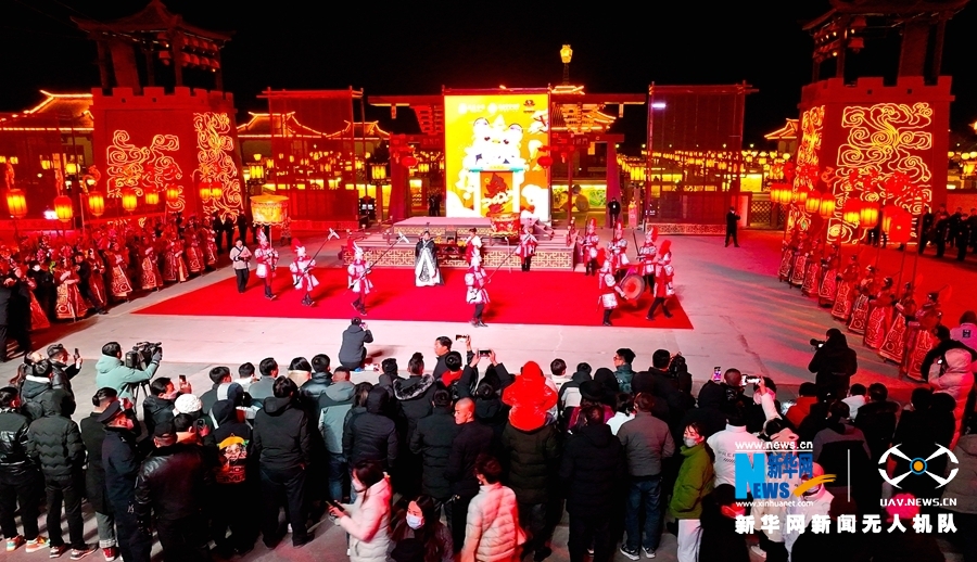 九曲黄河灯阵启灯仪式上的社火表演。新华网发(王将 摄)